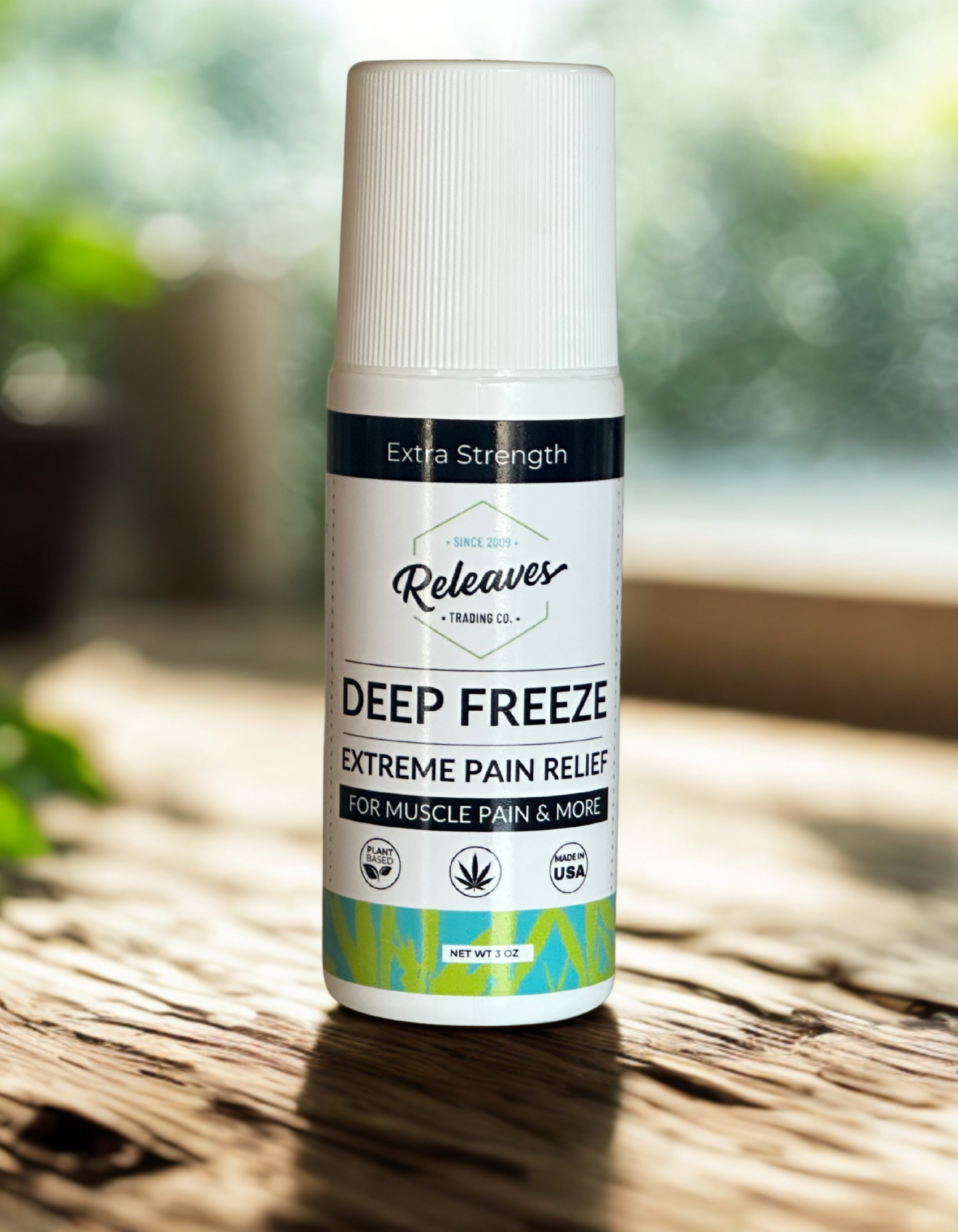 Our Releaves Deep Freeze Roll-On (3oz) delivers fast-acting, targeted comfort with the natural power of hemp and botanicals. The easy roll-on applicator makes it simple to soothe sore muscles, stiff joints, and everyday aches—without mess or residue. Keep it in your bag, gym kit, or desk drawer for on-the-go relief that moves with you.